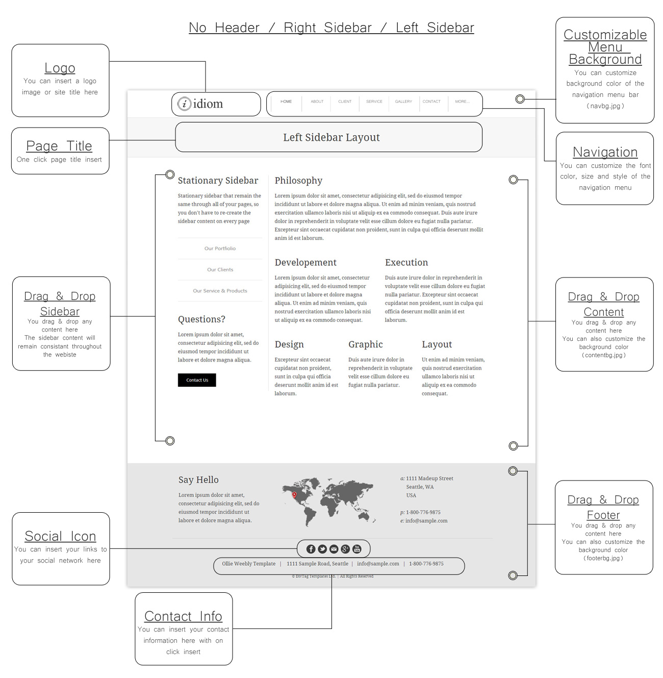 No Header / Text Header / Sidebar Layout